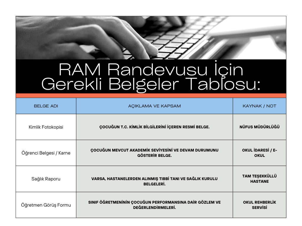 RAM Randevusu İçin Gerekli Belgeler Tablosu: