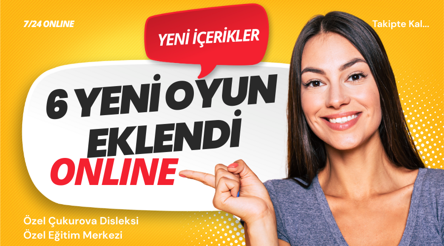 Web sitemize, 6 yeni oyun ekledik. Bu oyunlar, özel eğitim alanımıza uygun, bilimselliği kanıtlanmış ve olumlu dönüş alınanan oyunlardır.